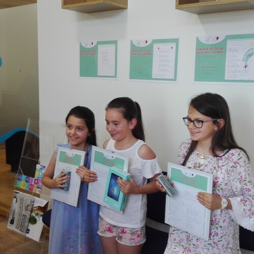 Após a análise de cerca de uma centena de poemas de alunos do 3º e 4º ano, do Ensino Básico, o Júri do concurso de poesia «Falar de Água com Amor», promovido pela Águas do Marco, selecionou os trabalhos vencedores. O poema “Falar de Água com Amor” de autoria de Ariana Filipa Araújo Pinheiro, do 3º ano, da EB1/JI de Eiró foi o grande vencedor. O segundo lugar foi atribuído a Mariana Filipa Baldaia Soares, da Escola Básica de Esperança. A entrega de prémios aconteceu na loja da Águas do Marco em junho de 2019.